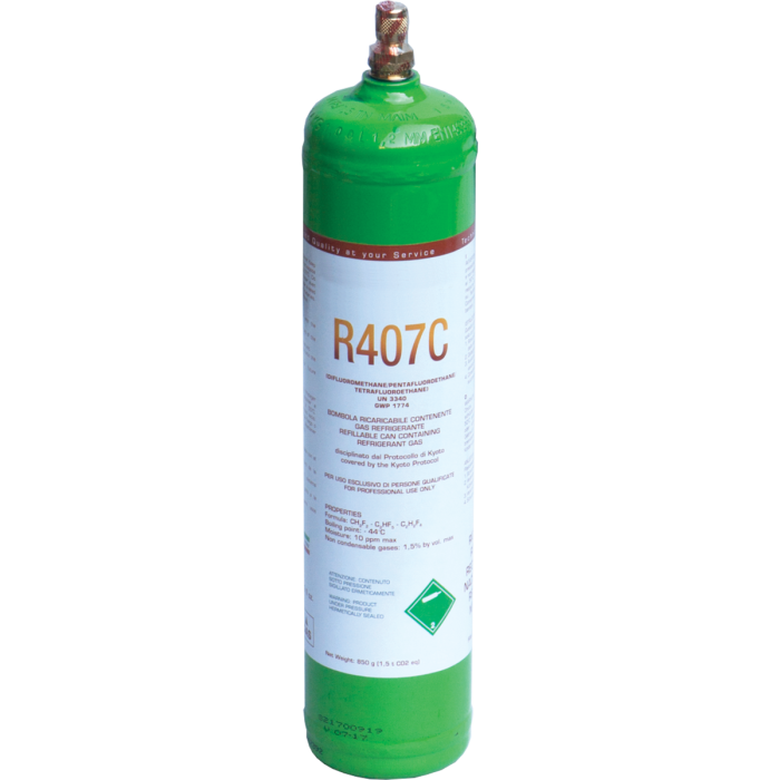 Bombola vuoto a perdere ricaricabile R407C da 0,85 kg.