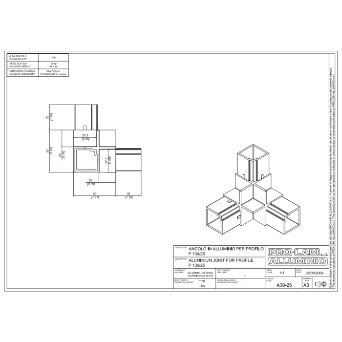 ANGOLARE A30/25 3VIE 30 MM.