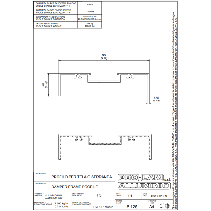 PROFILO P125 FIANCATA X SERRANDA 6M