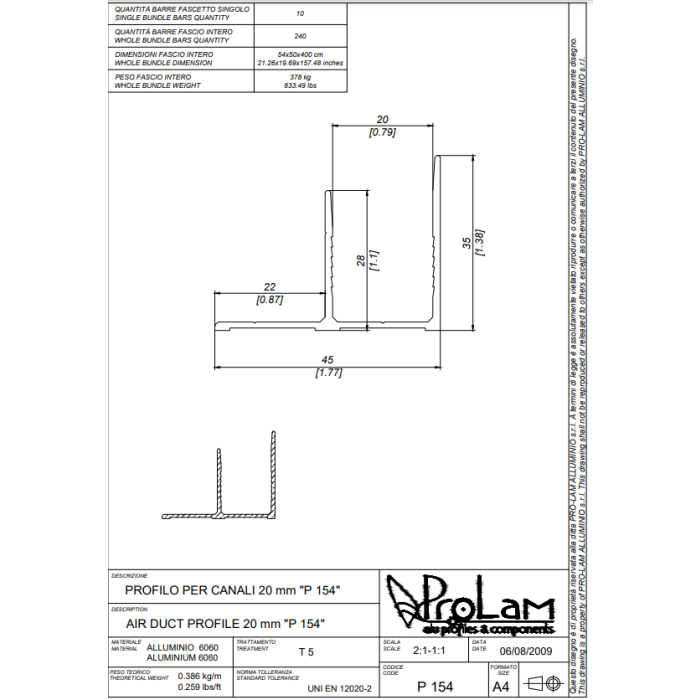 PROFILO "F" x 21mm P154 4MT =