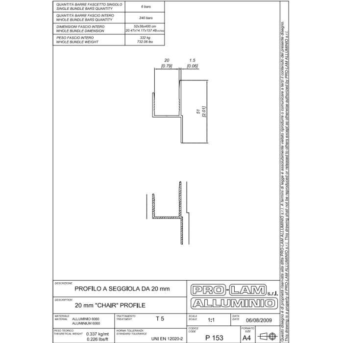 PROFILO SEGGIOLA 20MM P153 4MT =
