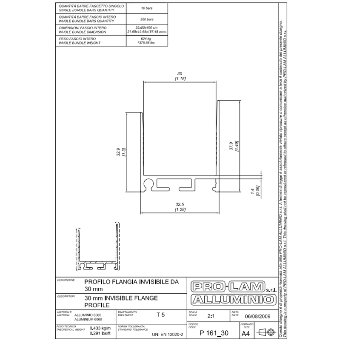 FLANGIA INVISIB.30mmALL.P161/30 4MT